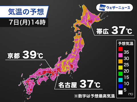 今日も広範囲で猛暑に 体温を大幅に超える危険な暑さの予想も