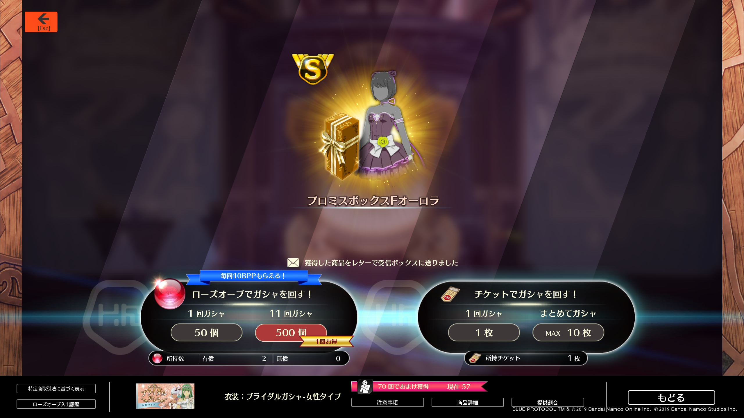 ブルプロで3枚ガシャのチケットが貯まっていたので、当たらないの覚悟でやってみたら、やりました当たりました!