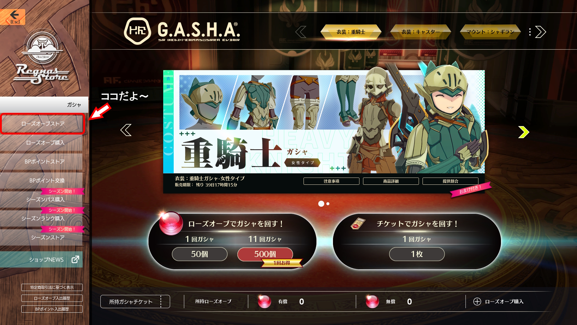 ローズオーブが400個もあると、ガシャが8回も回せますね。