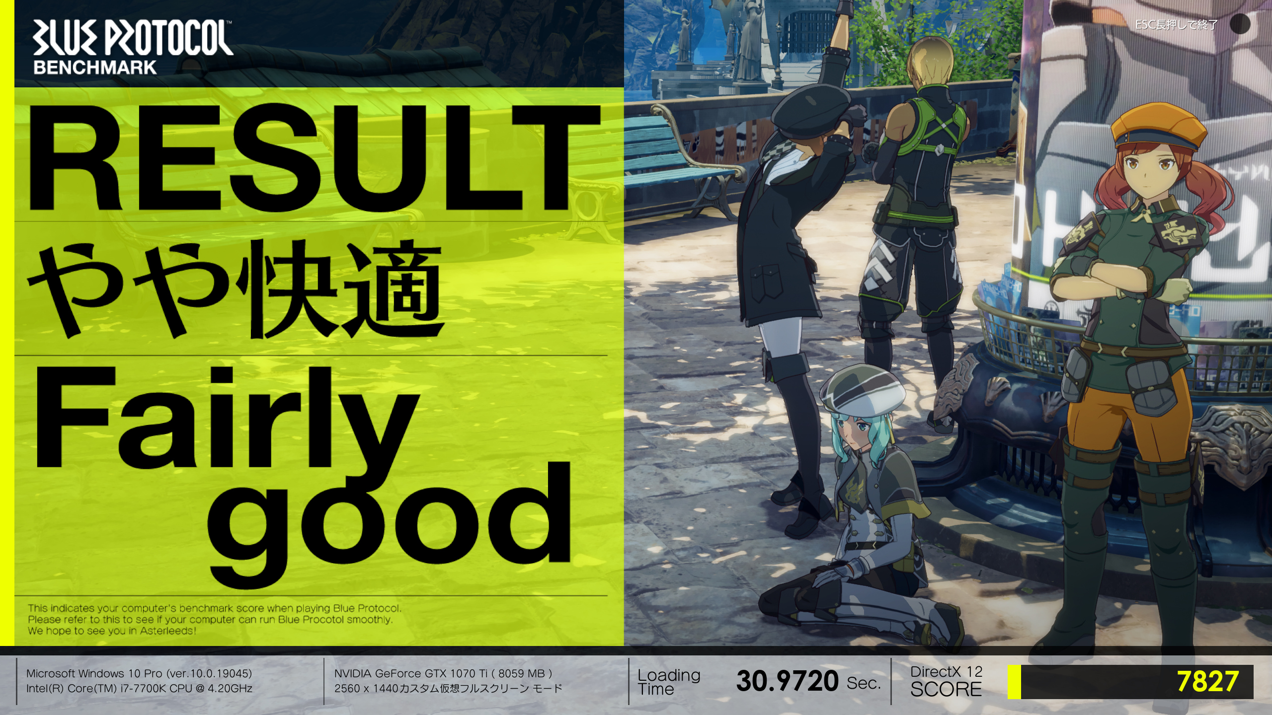 あと試しにBLUE PROTOCOLのベンチマークをやってみました。