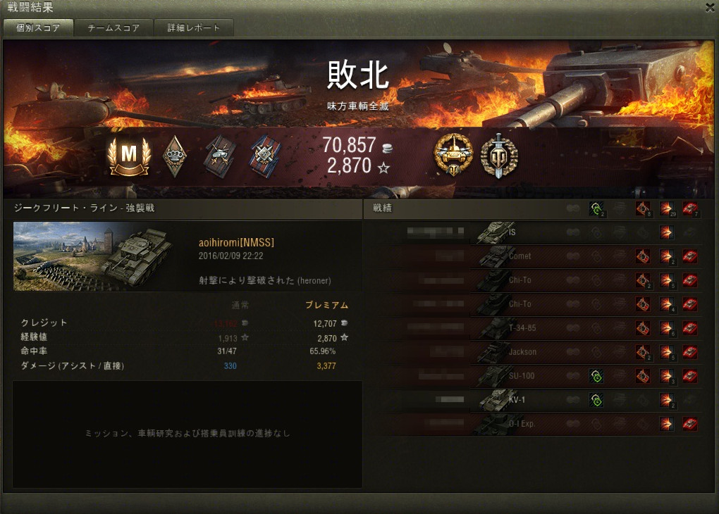 そんなこんなで、いつもの様にWoTのリプレイなんですが、バージョンが上がって以前のファイルが完全に観られなくなったので、ホントに最近のリプレイです。