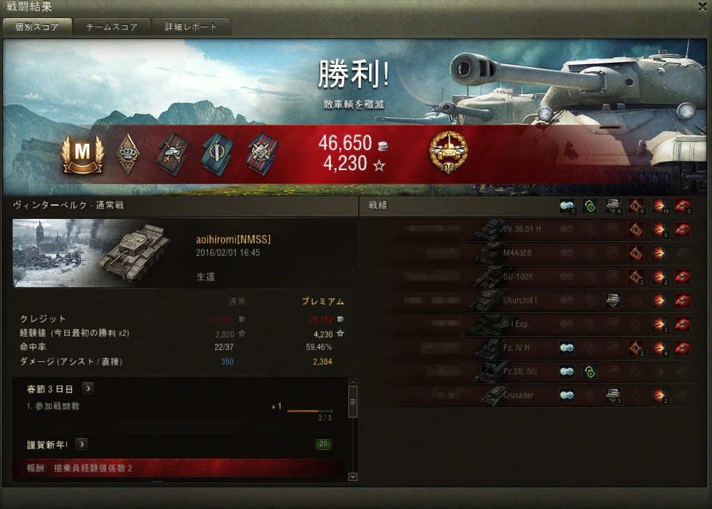 という事で、いつものWoTのリプレイ纏め上げです。