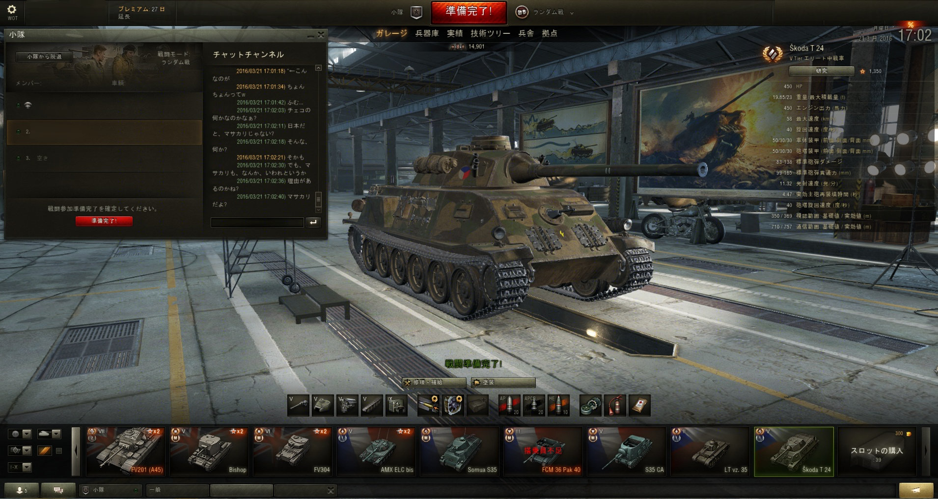砲装備も中途半端で、最終装備となる3cm砲のオートローダーは弾数が少ない上に、ルクスと同じ長い装填時間で、同Tierを相手にしてもフルHPの場合は倒しきれない使い難さです。