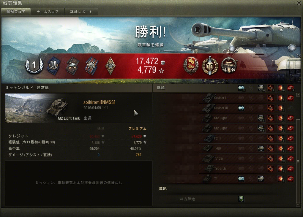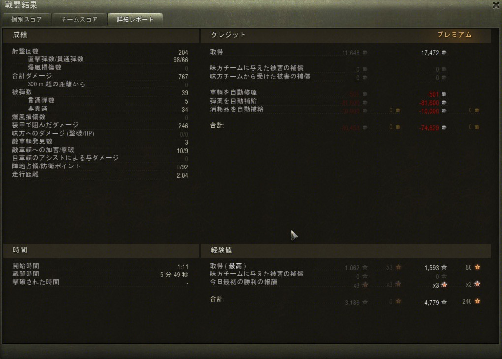Tier 3のダメージとしては2000を超えるのは滅多にないので嬉しかったですネ。