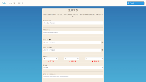 アカウント作成フォーム以降は言語選択が出来るので、日本語を選びます。