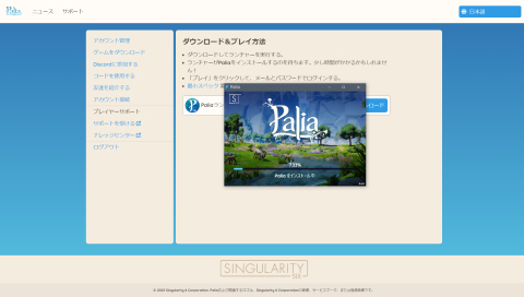 ダウンロードしたPaliaInstaller.exeを起動すると、ゲームクライアントのダウンロードが始まります。