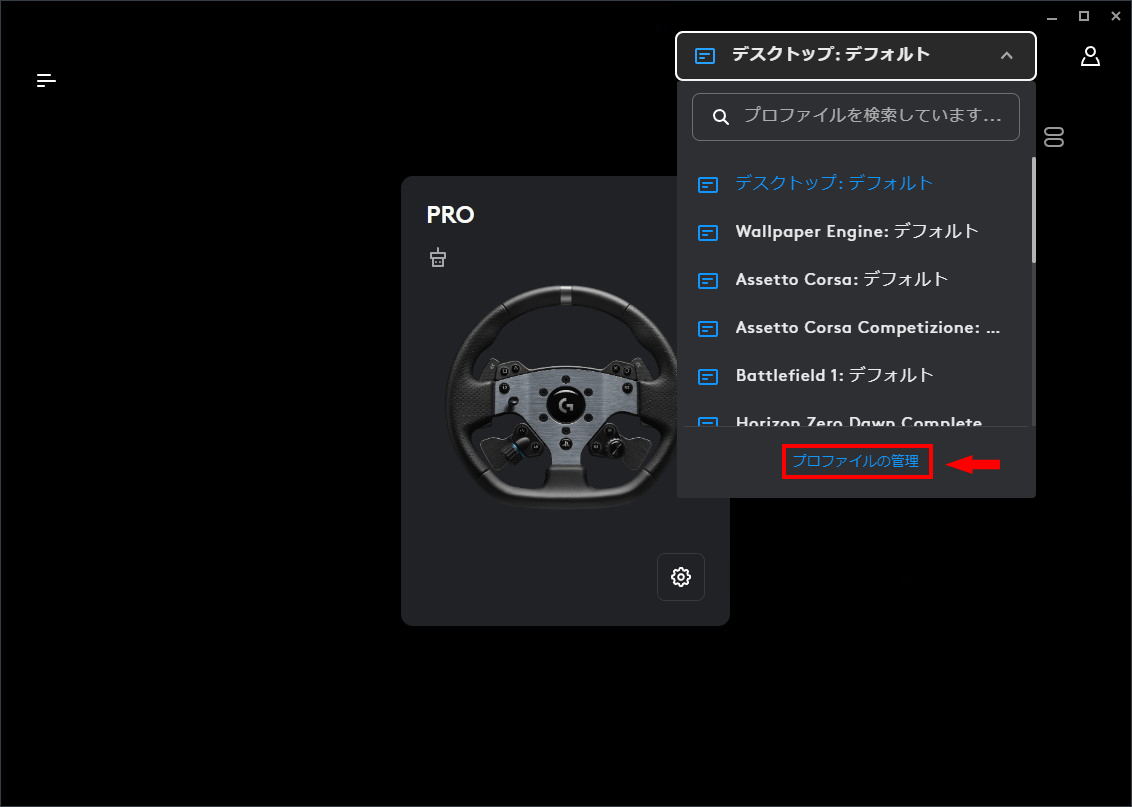 (2024年現在のG HUBの画面は若干異なります)