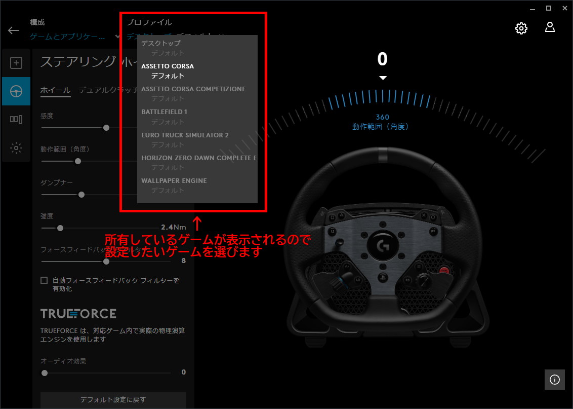 前回はパソコンでLogicool G PRO Racing WheelとPRO Racing Pedalsの設定を行う為のLogicool G HUBのダウンロードとインストールまでを書きましたので、今回はLogicool G HUBの説明をしていきたいと思います。