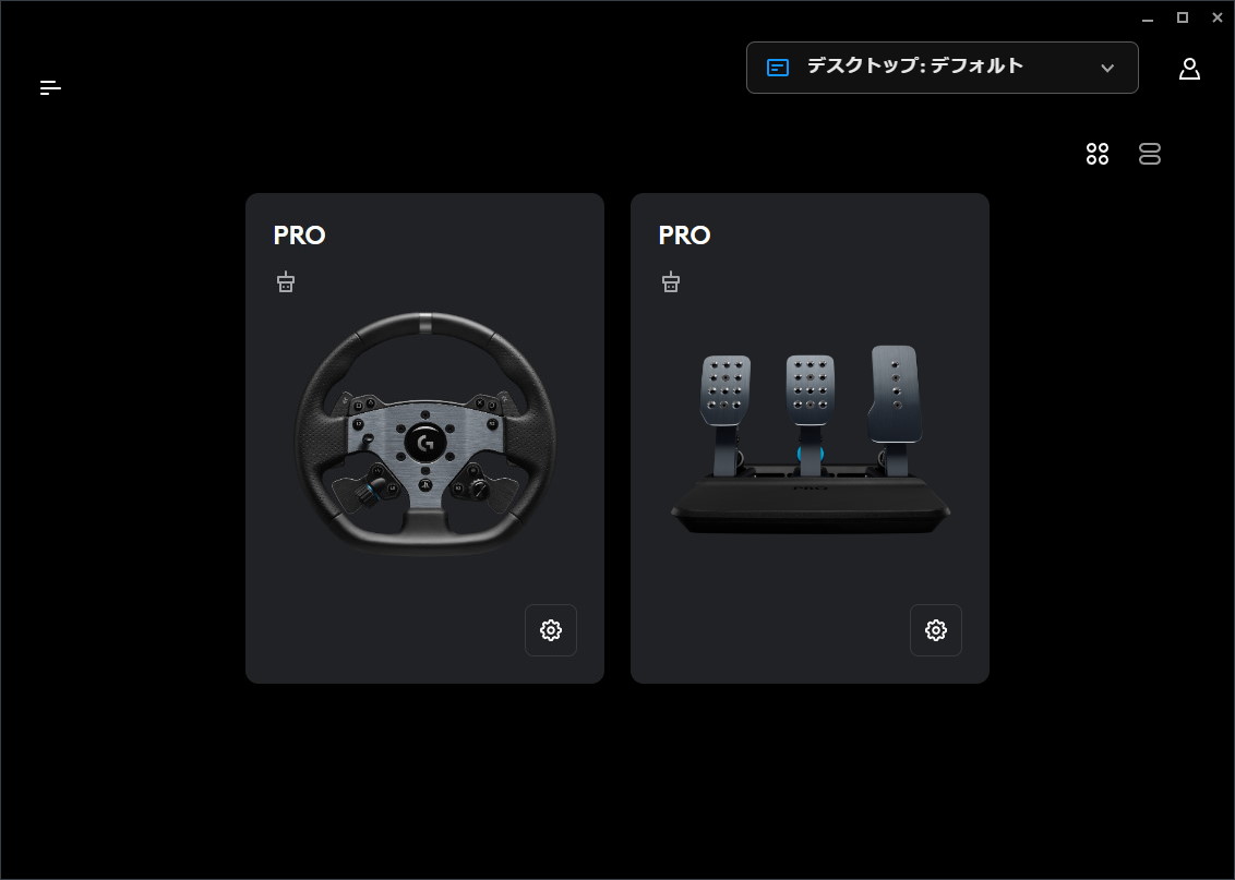 まずLogicool G HUBを立ち上げると、下の様な画面が出ると思いますが、ハンコン以外のLogicool G製品を使用して接続している場合は、ここに他の製品も表示されているかと思います。