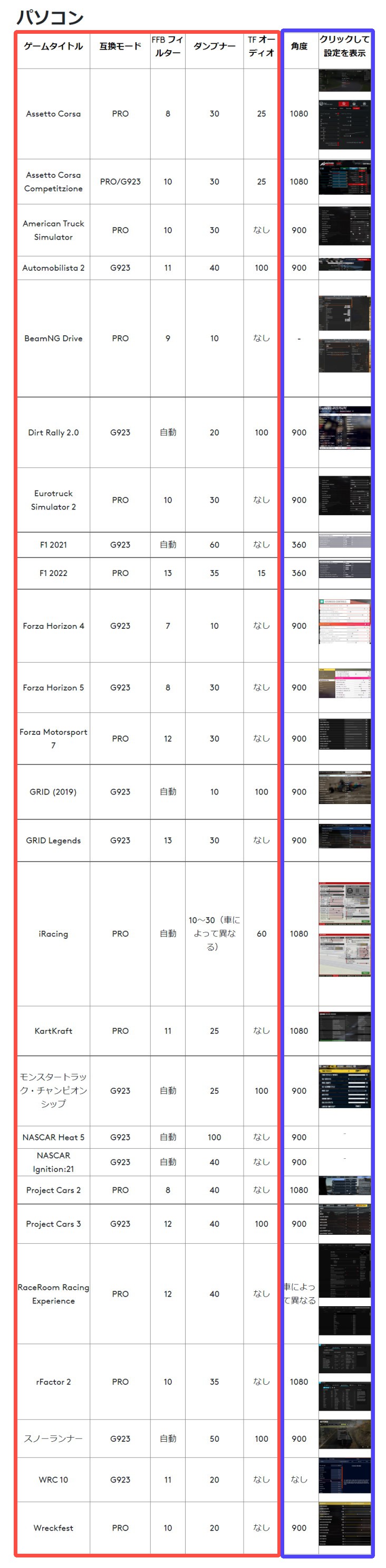 ↓ Logicool公式 PRO ホイールのゲーム内設定(PSの設定もあります)