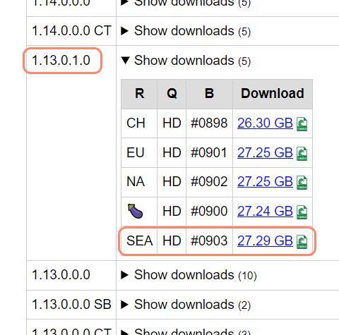 私はバージョン1.13.0.1.0、SEAサーバー、#0903をダウンロードしました。