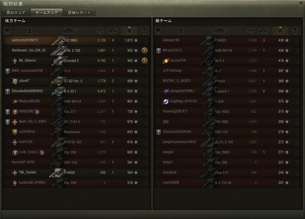 最近、デイリー消化をやってて思うんですが、Tier 4のメンバーとTier 8でのメンバーのレーティングがほとんど変わらないのは、どうなのって思います。