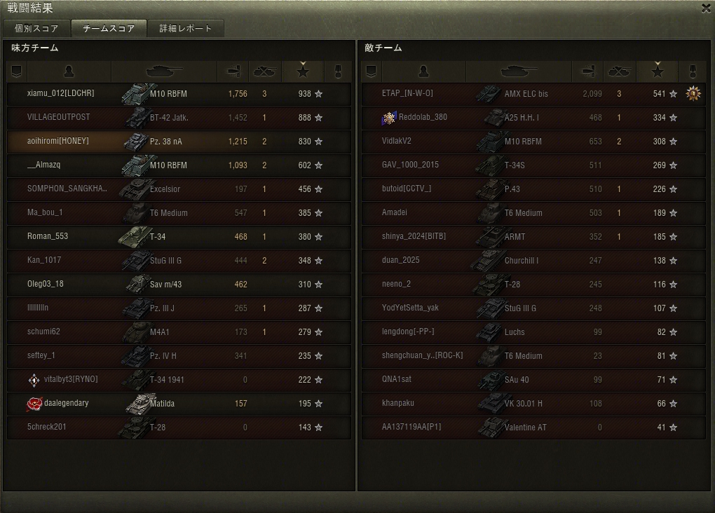 デイリーミッション消化で久々に Pz.Kpfw.38(t) N.A.(ドイツ軽戦車)を使いました。